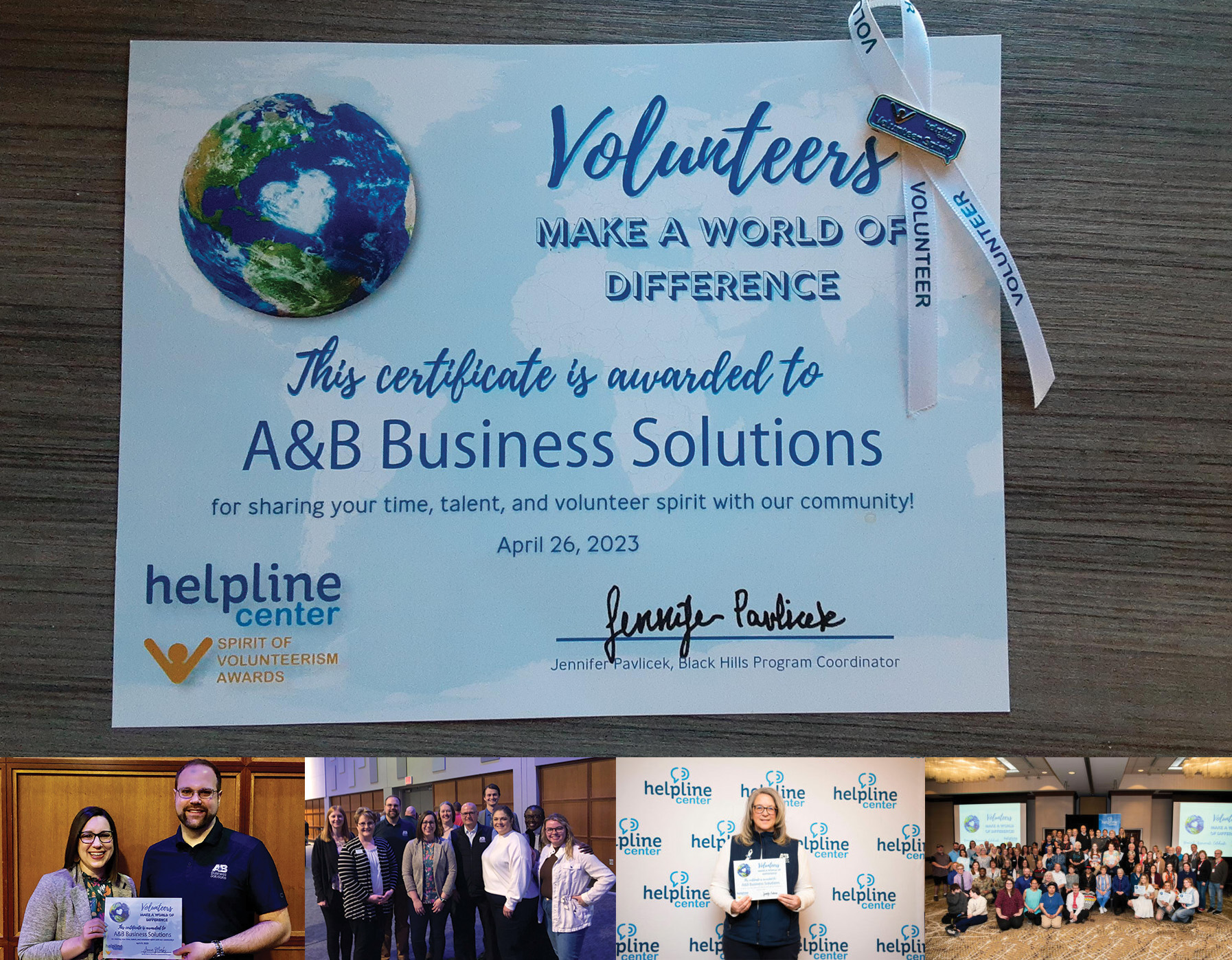 Additionally this year we were honored to be nominated by Junior Achievement of South Dakota for the Spirit of Volunteerism Award hosted by Helpline Center. A&B was picked as one of the 2023 Volunteer Honorees!