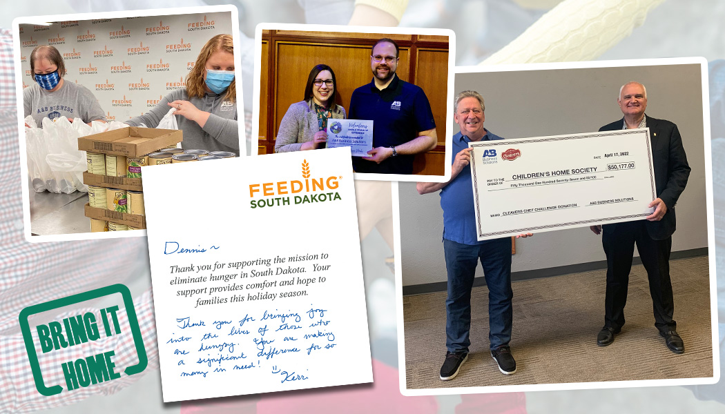 At A&B Business, we believe that if you want to make the world a better place, you need to start where you live. That’s why we developed Bring It Home, a program that gives back to our home communities by donating at least 1,000 hours of volunteer time per year. At A&B Business, we encourage our team members to volunteer for causes that are meaningful to them. We offer 32 hours of paid time each year for our employees to go out and make a positive impact in the community. Here are a few places that our employees have been volunteering their time: Helpline Center, Feeding South Dakota, Boys and Girls Clubs of the Sioux Empire, Junior Achievement, Girls on the Run and so much more. We know that the best way to improve the world is to begin with our own neighborhoods.