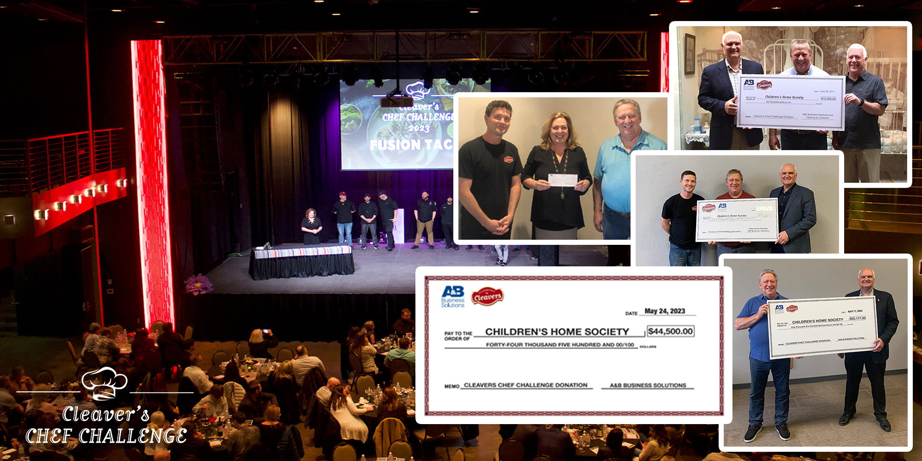 One way A&B Business gives back to our community is supporting Children’s Home Society. A&B Business has been a long-standing partner of Children’s Home Society, with Dennis Aanenson serving on its Board of Directors for over twenty years. For the last nine years A&B Business, together with Catering by Cleavers have organized a fundraising event called Cleavers Chef Challenge in order to support Children’s Home Society. This event is part of a long-term partnership between these two businesses and the Children’s Home Society, has raised more than $250,000 over the nine years. In 2023 alone, this event has raised $44,500. As a company we strive to give back and make our community stronger.