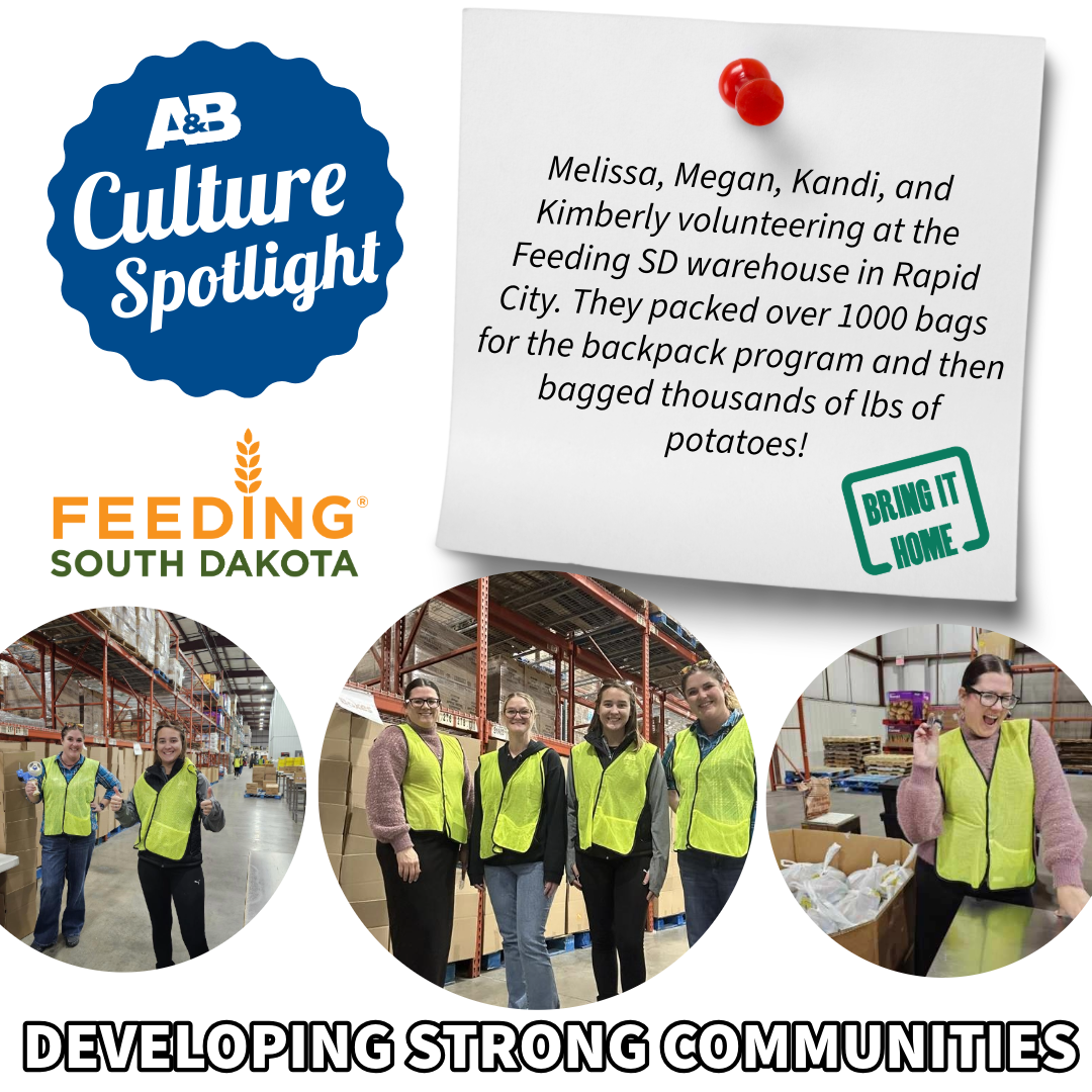 - Feeding South Dakota – Combating hunger is a priority for us, and our volunteers have worked tirelessly with Feeding South Dakota to distribute food to families in need. Whether it’s packing food boxes or assisting at distribution centers, our team has been dedicated to ensuring no one goes hungry.